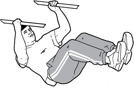 Hold your body parallel to the ground with knees fully extended. Draw your knees to your chest, then extend again.