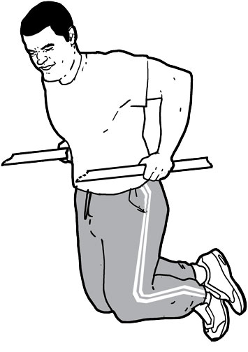 Lower yourself over the bars until your arms form a 90-degree angle, then press up until your elbows lock out.
