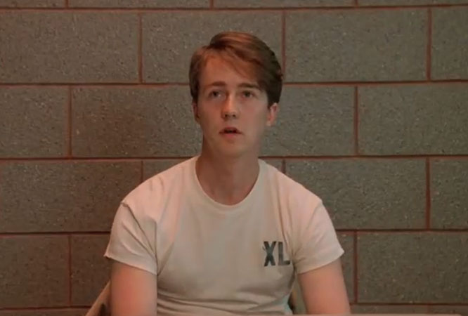 Since then, he has gone on to play cub scout leaders, a lawyer for Larry Flint, a greasy, cheating card sharp and a lovesick, singing sap in Woody Allen's Everyone Says I Love You. But along the way, he made two movies that redefined his image into a bad-ass—heck, one of them arguably redefined the entire definition of a "bad-ass." In 1998, he bulked up tp play a terrifying, head-on-curb-stomping neo-Nazi in American History X. The following year, starred alongside Brad Pitt in the cult classic Fight Club, where he got to do what many of us have only dreamed of—pound Jared Leto's pretty face into a bloody pulp.