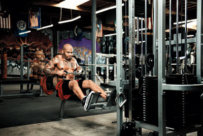 Tug-of-War In a seated cable row machine, perform one strict rep followed by one rep in which you keep your arms extended out front and pull the weight by leaning your torso back until your back is touching the seat pad. Continue alternating reps in this manner.