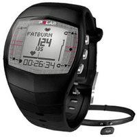 This device consist of what looks like a slick 80's-retro watch and a low-profile chest strap, but is unique in that in addition to the usual references (heart rate, calories burned, various timing modes), its proprietary EnergyPointer tells you whether you're working to burn fat or maintain cardio fitness and the built-in Polar Fitness test measures your aerobic fitness by comparing your resting heart rate, keeping track as you progress and registering your VO2 max. You can even keep track of your weekly training history.
