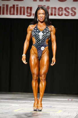 Jenn Gates confirmed her status as a threat for a top-three placing – and possibly more – at this year’s Figure Olympia by winning with straight firsts. Gates notched career victory number three in only her second year as a pro.