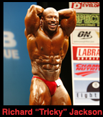 RICHARD “TRICKY” JACKSON: “If you do a side triceps properly, there’s a slight twist toward the judges where they get a really good look at your obliques and your abs. It’s important to try to keep your abs tight in every pose and every movement. When I practice my posing, which I do daily at competition time, I always concentrate on making sure I keep my abs tight in every pose. Even when doing my posing routine, I try to do the same thing. When I watch comparisons, I see that athletes have a tendency to relax their abs, and I think that reflects the athletes’ conditioning in the judges’ minds. If the judges can see a six-pack at any time, they know you’re in shape.”