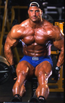 Because calves have a long and narrow range of motion, leverage and contractive power are lost when they are stretched all the way to the bottom. The only way to fully fatigue all of the calves’ muscle fibers is to cheat them up to the middle position, where the most explosive power is required. If he couldn’t start the contraction with muscle power alone, Matarazzo would use bodyweight momentum to move the weight off the bottom. This would develop into a slow even bounce, just enough to overcome inertia, but not so much that his calves weren’t flexing or he might tear something. Since calves are traditionally hard to develop, controlled cheating enabled him to really pound them.