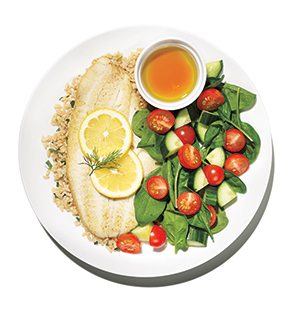 Totals: 278 calories, 31g protein, 8g carbs, 15g fat