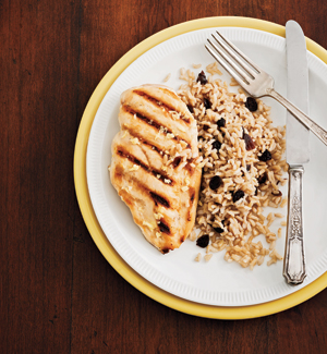 Marinated Ginger-Garlic Chicken & Brown Rice with Cranberries Makes 4 servings