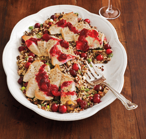 Cranberry Turkey Cutlets with Wild Rice and Chestnuts Makes 4 servings