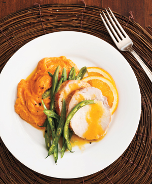 Orange-Honey Pork Loin with Sweet Potato Mash Makes 4 servings