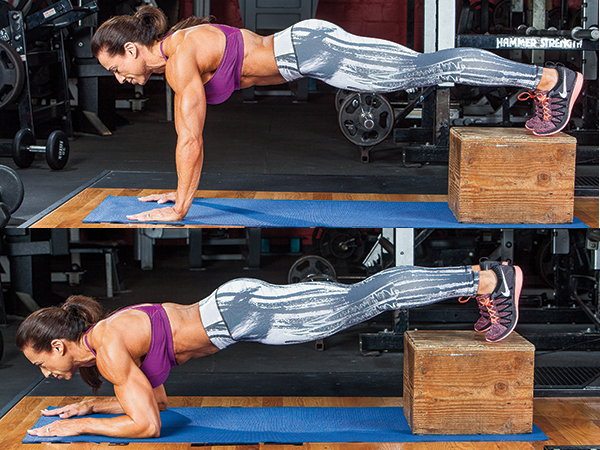 Tip: Keep your elbows tight to your sides, and avoid resting at top.