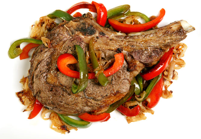 8 oz rib-eye steak, sauteed spinach with bell peppers and onions