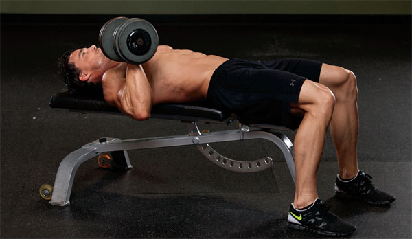 Lower the weight under control, then explode back up, keeping your chest raised and your elbows tucked to prevent injury. Don’t pause at the top. Instead, maintain continuous tension—which will lead to more muscle growth.