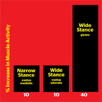 But with squats, the width of your stance alters the focus placed on certain muscles such as the vastus medialis (teardrop muscle on the inner quads), vastus lateralis (outer quads) or glutes.